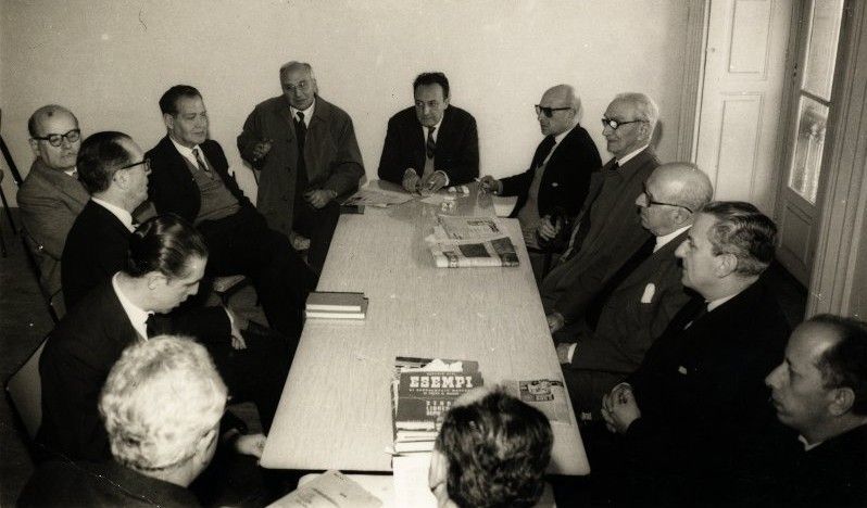 El 25 de julio de 1950 se celebró en la vinoteca del Hotel Compostela de Santiago la asamblea fundacional de Editorial Galaxia. Bajo la presidencia de Ramón Otero Pedrayo, el Patriarca de las Letras, y con la presencia de figuras destacadas del galicianismo como Manuel Gómez Román, secretario del Partido Galicista, se fue configurando el núcleo de la resistencia cultural y política del galicianismo, obligado a la clandestinidad y al exilio tras la Guerra Civil Española. Francisco Fernández del Riego, Xaime Illa Couto y Ramón Piñeiro fueron las tres figuras que, desde el principio, dirigieron la editorial, comprometida con la recuperación de la lengua y la cultura gallegas durante los difíciles años de la dictadura.